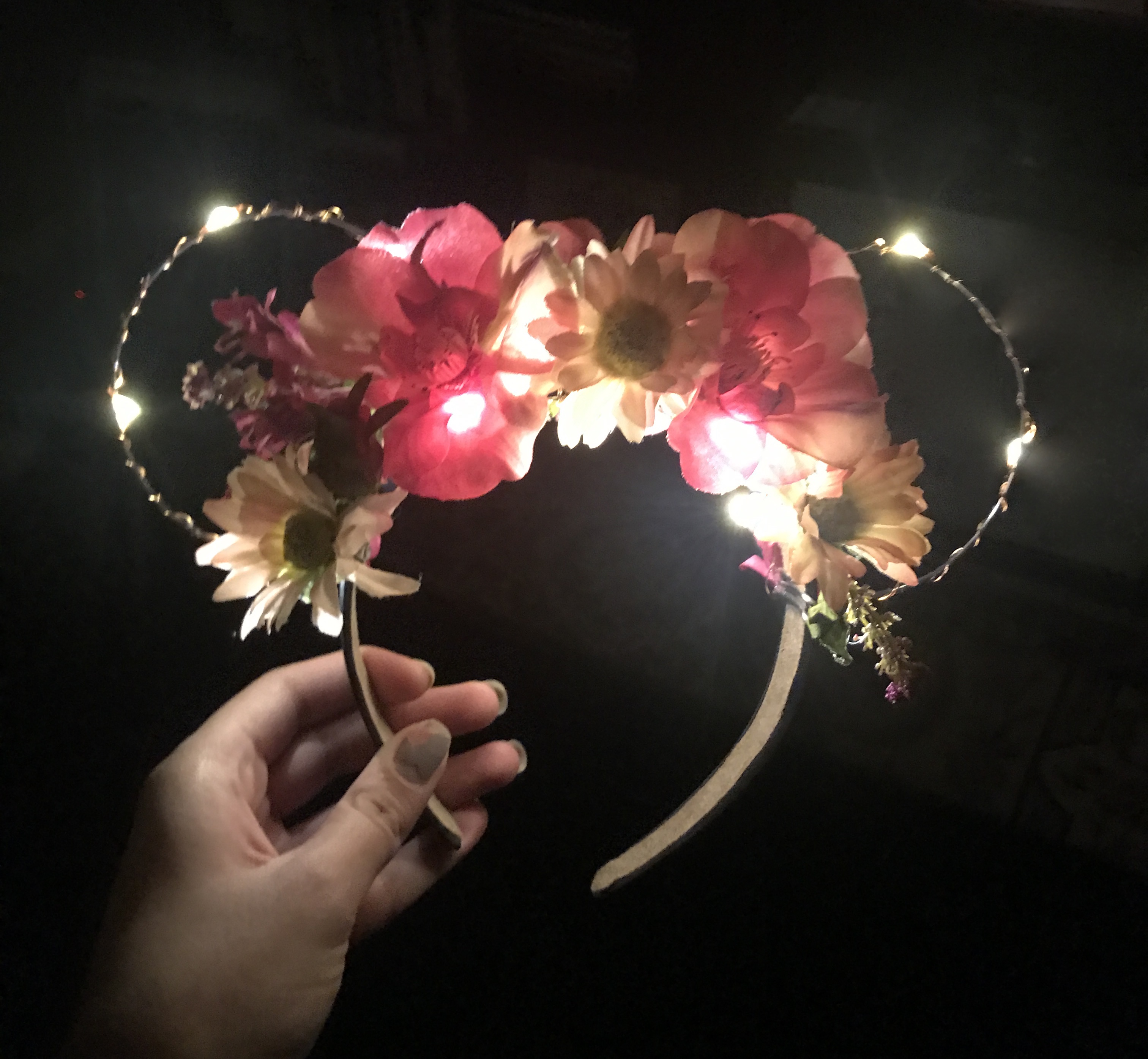 These hand-made floral and feminine ears are the perfect accessory for every fairytale lover. They are made to stand out with stunning LED lights. Batteries included.